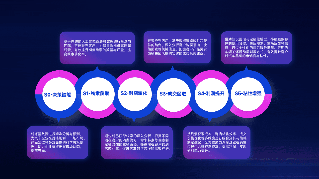 通过拓宽潜在客户来源、、、、优化线索分配并提高到店转化率,,,,以增强销售效率。。同时,,,利用线索数据不断优化分析模型,,有效提升转化率,,扩大营销影响力。。。。